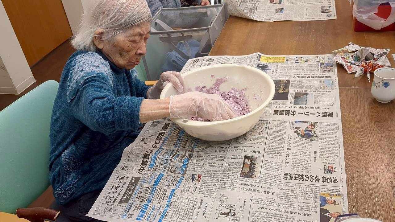 皆でむーちー作りをしました。